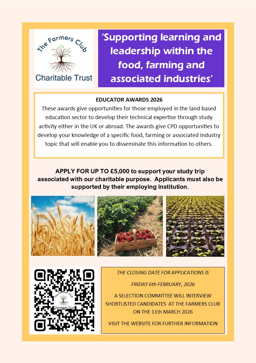 Agriculture Educator Awards are specifically designed to help those employed in agricultural education to widen and develop their own technical expertise through study activities either in the UK or abroad.
